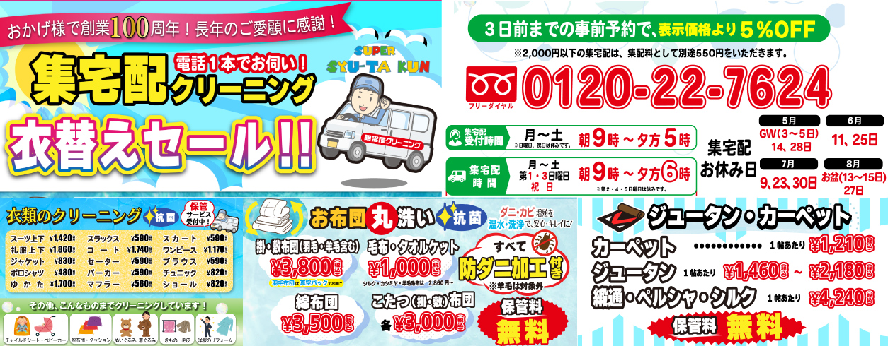 お知らせ 2023.07.08インフォ7/29(土)駅北店臨時休業のお知らせ2023.07.01お得7月のお得情報♪好評につきお布団セール継続!ゆかた・はっぴ20%OFF♬2023.06.15お得【会員様限定】アルタ店限定セール開催のお知らせ2023.06.13インフォ6/18(日)、6/24(土)マックスバリュ尼寺店臨時休業のお知らせ 明治屋のクリーニング商品 ダウン 布団 キャンプ用品 学生服 ダウン 布団 キャンプ用品 学生服 佐賀の皆様に愛され創業100年事業・会社概要 一着を大切にする。明治屋クリーニングのこだわり Twitter Tweets by meijiyacleaning Facebook LINE 明治屋クリーニングLINEアカウント クリーニングのお得な情報などを配信しておりますので、ぜひお友だち追加ください! ※店舗ごとのLINEアカウントは、2023年6月から廃止となり、お得情報は配信されません。 ※上のLINEを登録してください。 店舗一覧へ