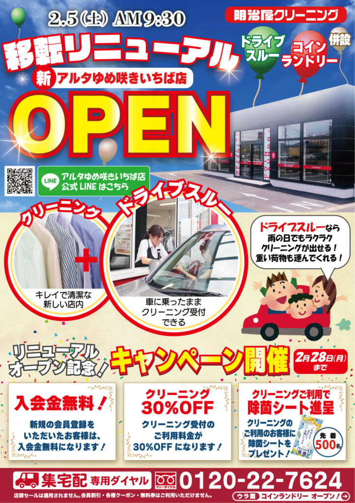 2月5日(土)から明治屋クリーニングアルタゆめ咲きいちば店がリニューアルオープン!❤