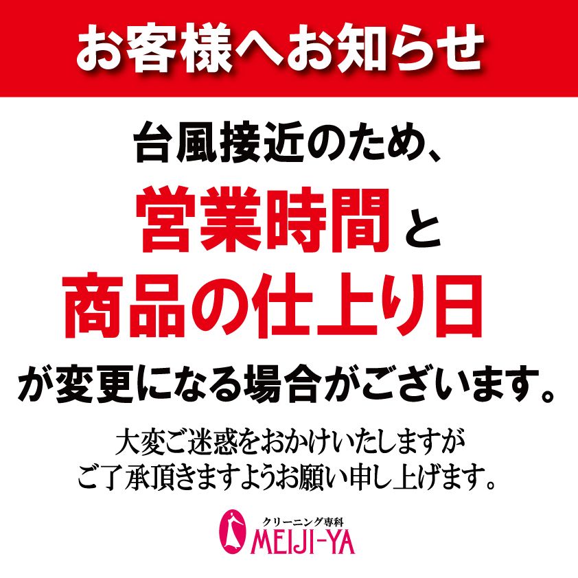 明治屋クリーニング各店でも、台風の影響で、