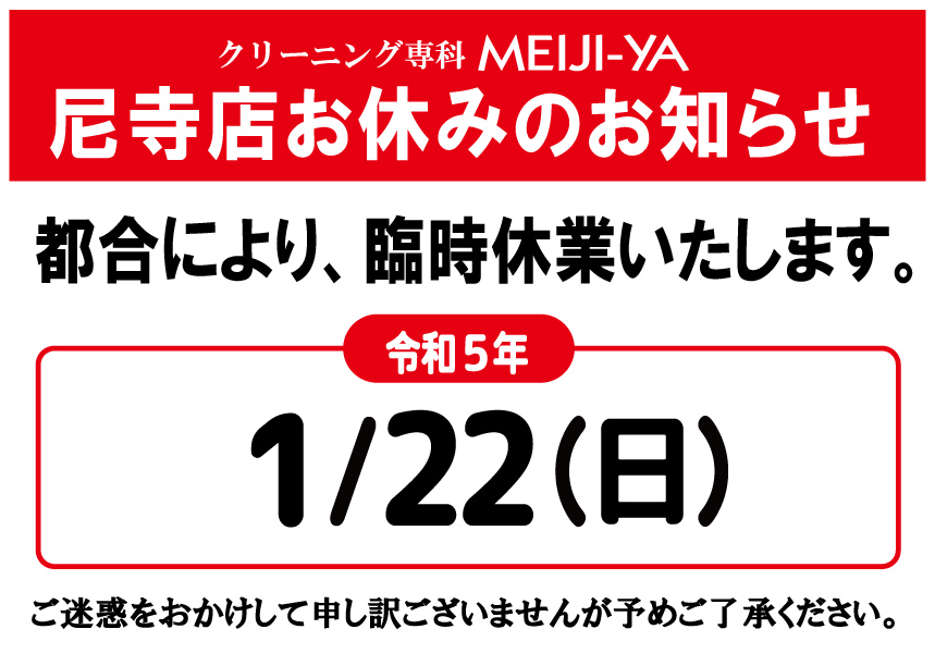 来年1/22(日)臨時休業【マックスバリュ尼寺店】