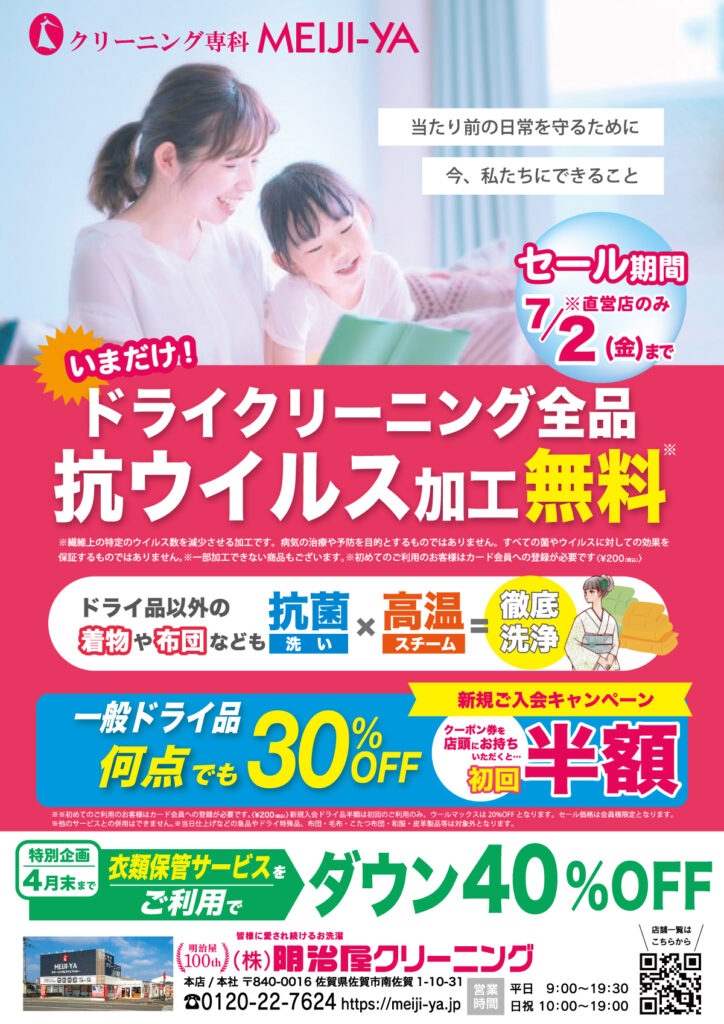 【4/1(木)からドライ品セール】抗ウイルス加工無料!何点でも30%OFF!保管利用でダウン40%OFF!