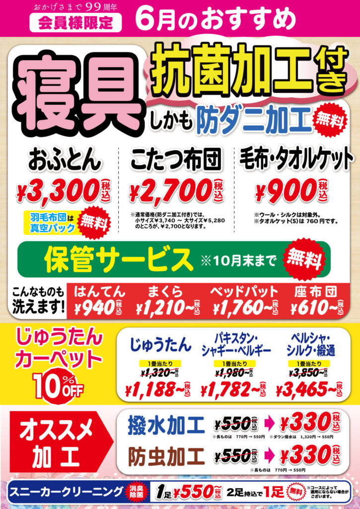 6月のお得情報!お布団クリーニング&保管キャンペーン!じゅうたんカーペット10%OFFも!