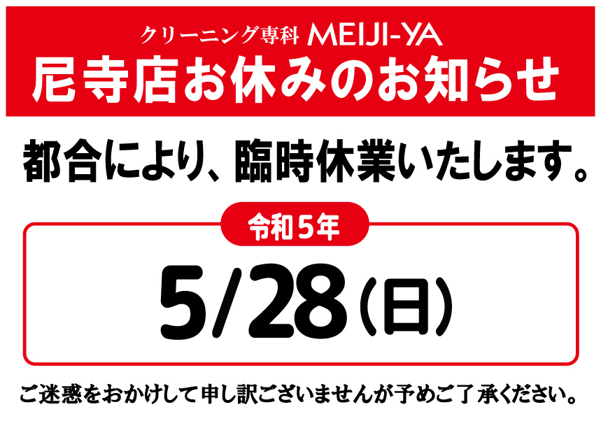 5/28(日)マックスバリュ尼寺店は臨時休業いたします。
