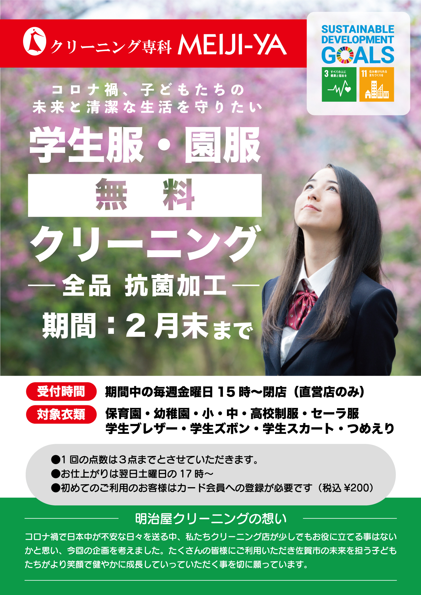 子供達、お母さま方を元気にしたい!との思いから、学生服無料クリーニングを企画しました![]()